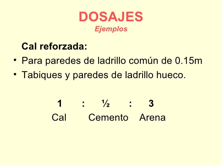 Proporciones Para El Repellado Y Aplanado De Muros Y Techos De Una